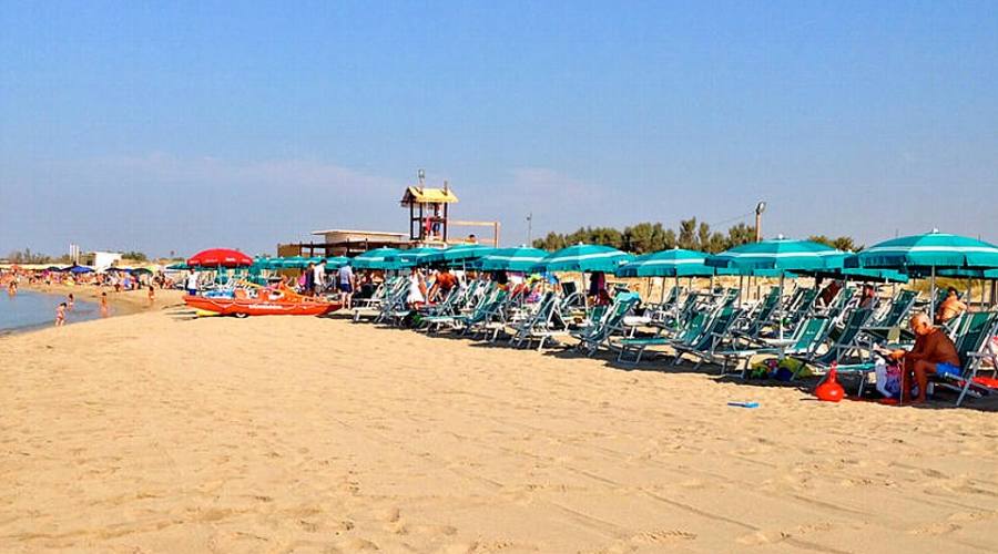 Da 50 a 100 metri circa dalla lunga distesa di sabbia fine e dalla spiaggia libera; circa 250 metri dalla spiaggia privata attrezzata raggiungibile con stradina comunale, per un breve tratto sterrata.